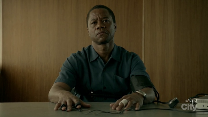Il cast corale di questa prima stagione si avvale di grandi interpreti cinematografici e televisivi, come già American Horror Story ci aveva abituato: da Cuba Gooding Jr. (che interpreta un ottimo O.J. Simpson), a uno straordinario ed irriconoscibile John Travolta (l’avvocato della difesa Robert Shapiro), passando per una carismatica Sarah Paulson (l’avvocato dell’accusa Marcia Clark) in uno scenario da procedural drama dove i personaggi non sono mai stereotipati ma dimostrano grande versatilità e sfaccettature diverse. Ognuno di essi è dotato di lati negativi e positivi così da rendere difficile fino all’ultimo, da parte della “giuria televisiva”, stabilire chi sia veramente colpevole e chi no. Il primo impatto con i protagonisti è ottimo, non c’è moltissimo spazio per introspezione o empatia perchè Scott Alexander e Larry Karaszewski si focalizzano più sullo sviluppo della trama che sui character, tuttavia già così le interpretazioni di Sarah Paulson, John Travolta e Cuba Gooding Jr. sono eccellenti e lasciano intendere che da qui alla fine ci sarà molto spazio di manovra per l’analisi e l’empatizzazione. L’unico che appare un po’ impacciato è David Schwimmer, non proprio a suo agio fuori dall’ambiente sit-com in cui è rimasto incastrato dalla fine di Friends.