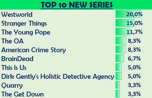 Prima di andare oltre però, quest’anno ci permettiamo di inserire anche la nostra personale classifica interna alla Redazione di Recenserie dove, in maniera faziosa e anacronistica, è stato effettuato il voto per la Miglior Nuova Serie del 2016. Più o meno tutti abbiamo guardato i nuovi pilot presenti qui in classifica ed il risultato è qualcosa che mette d’accordo tutti, almeno per quanto riguarda il vincitore.