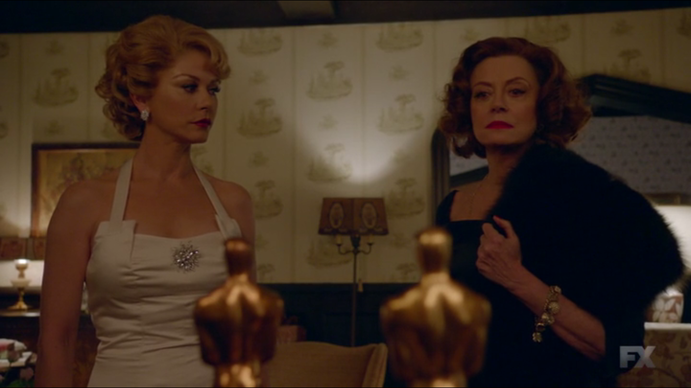 La faida tra le due grandi attrici arriva finalmente al momento clou, introdotto già dal titolo: la cerimonia degli Oscar, la consacrazione per ogni stella del cinema, soprattutto nell’epoca d’oro di Hollywood. Nell’episodio precedente Joan aveva scoperto, suo malgrado, di essere stata estromessa dalla rosa di nomine per concorrere come miglior attrice del 1962, a differenza di Bette, data già come favorita. Arriva quindi al culmine anche la morbosità dello spettatore. Quella necessità di vedere scorrere il sangue tra le due donne, in un classico Catfight senza esclusioni di colpi.