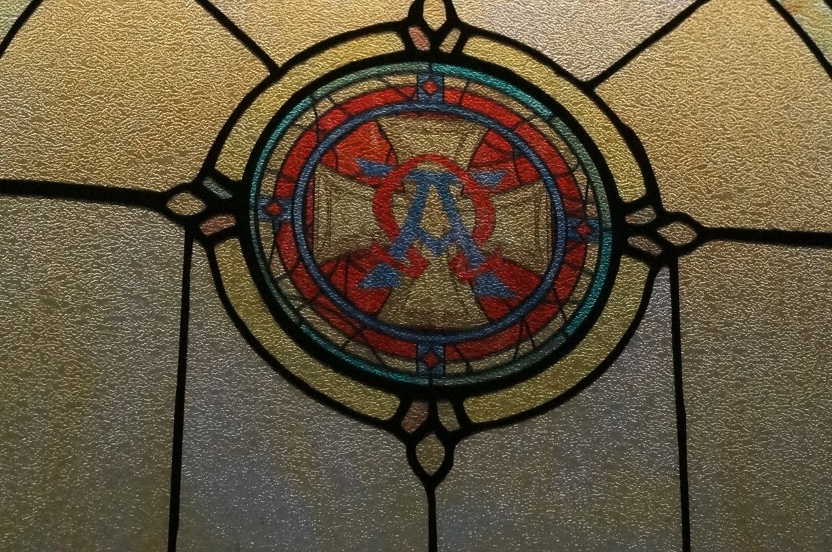 32) In una delle vetrate della chiesa di Jesse compare questo simbolo: