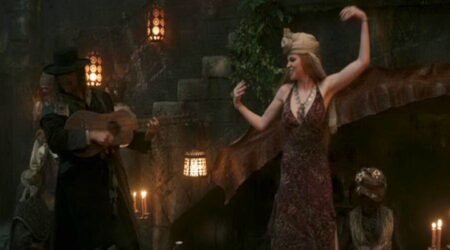 Fra tanti momenti dolorosi e prese di coscienza, c’è però spazio per un momento di allegria contagiosa. Innanzitutto, Alexandre Willaume ha trovato un momento libero nei suoi molteplici impegni ed è tornato nel ruolo del menestrello Thom Merrilin.