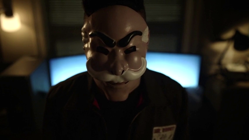 La scena iniziale si riallaccia direttamente a quella conclusiva dello scorso season finale, quando qualcuno si presentava alla porta di Elliot nella medesima maniera in cui ha fatto Darlene. Tutto è volutamente riproposto per creare quel senso di disorientamento che da sempre Esmail trasmette nel suo prodotto, un senso di disorientamento che, puntata dopo puntata, è diventato il vero motore di Mr. Robot e che, proprio per questa sua natura, non può che essere amato e studiato. Viene a crearsi quindi la necessità di collegare i pezzi di un puzzle invisibile fatto di aneddoti, storie e fatti non raccontati, cause e conseguenze. L’inizio di “Eps 2.2_Init1.asec” è quindi volto a fugare i dubbi circa la nascita del progetto hacker ora noto al mondo come fsociety, la personalità di Mr. Robot nasce e prendo possesso del corpo di Elliot grazie ad una maschera, quella che poi diventerà il volto del gruppo di hacker, ed è esattamente nell’istante in cui viene indossata che tutto cambia: Mr. Robot nasce al minuto 08:57. È il momento del parto e nemmeno ce ne si rende conto.