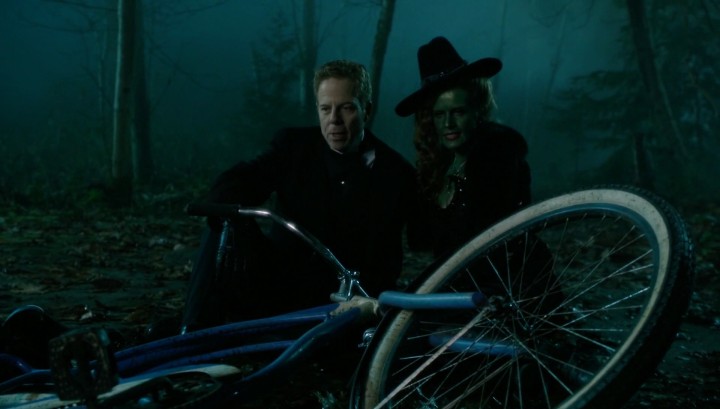 Perché riciclare un villain di vecchia data per contaminare la storia di uno nuovo che, seppur nel contesto ormai perennemente trash, aveva delle potenzialità? Perché farli andare in bicicletta insieme per i boschi oscuri di Oz (identici a quelli della Enchanted Forest, così come identici a quelli intorno Storybrooke: eppure da noi la vegetazione cambia anche a pochi chilometri di distanza), in quella che senza timore di essere smentiti possiamo considerare come una delle scene più brutte della storia recente della televisione? C’è poi qualcosa che non torna nella spiegazione finale. L’oltretomba come Storybrooke in un giorno di merda di maltempo. Ok, ma la spiegazione che dà Ade a Zelena regge? Il flashback non è forse precedente alla conoscenza di Zelena per Storybrooke? E se non fosse così e il recensore ha capito male, non potevano spiegare meglio la cosa? Non hanno voluto spendere per una scenografia diversa, ok, ma qualcosa di migliore se la potevano inventare sicuramente.