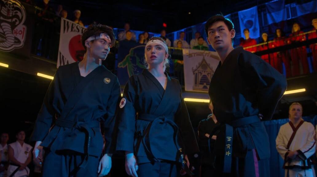 Questa espansione territoriale si traduce, fortunatamente, anche in un ingrandimento del cast. Cobra Kai è sempre stato uno show corale, in cui proprio la moltitudine di protagonisti e storyline rendeva anche impossibile prevedere con certezza l’esito di un tradizionale cammino dell’eroe. Mentre in qualsiasi altro prodotto di genere sportivo è facile intuire chi vincerà la competizione finale, in Cobra Kai il colpo di scena è sempre dietro l’angolo, e così il Miyagi-Do può perdere contro i suoi rivali di sempre, per poi vedere trionfare un dojo venuto fuori dal nulla come gli Iron Dragons.