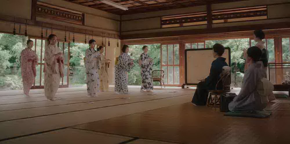Ci sono, ad esempio, corsi di ikebana, di musica, ma soprattutto di danza. Giova qui ricordarlo: la geisha non è una prostituta, è un’artista, con tutto quel che ne consegue nel bene e nel male. Anzi, da come viene presentato in questa serie, il suo ruolo ha un che di devozionale, come se ci fossero sacri riti da ufficiare.