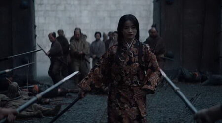 Anna Sawai prende il centro della scena praticamente dall’inizio alla fine, mentre il suo personaggio si scatena a tutto tondo. Si va dalla diplomazia, nel contrattare la possibilità di uscire dal castello, all’affrontare una squadra di guardie con la naginata. Acquistano così senso le scene delle puntate precedenti in cui si vedevano le dame allenarsi con questa arma.