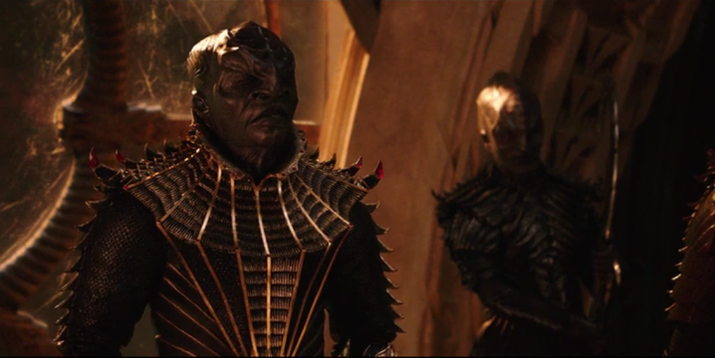 E poi ci sono loro, i Klingon. La prima cosa che balza all’occhio è sicuramente l’ennesimo restyling a cui sono stati sottoposti e che li ha resi ancora più spaventosi e “alieni”, ben diversi dagli umanoidi barbuti delle serie precedenti; all’orecchio, invece, non sfugge il fatto che quasi tutte le loro battute sono in Klingonese (un vero tocco di classe, favorito forse dal recente successo delle lingue artificiali create per Game of Thrones, il Dothraki e l’Alto Valyriano), al punto che forse non è poi così esagerato affermare che si sentono più parole in tale lingua in questa ottantina di minuti che in tutte le precedenti serie televisive e film della saga.