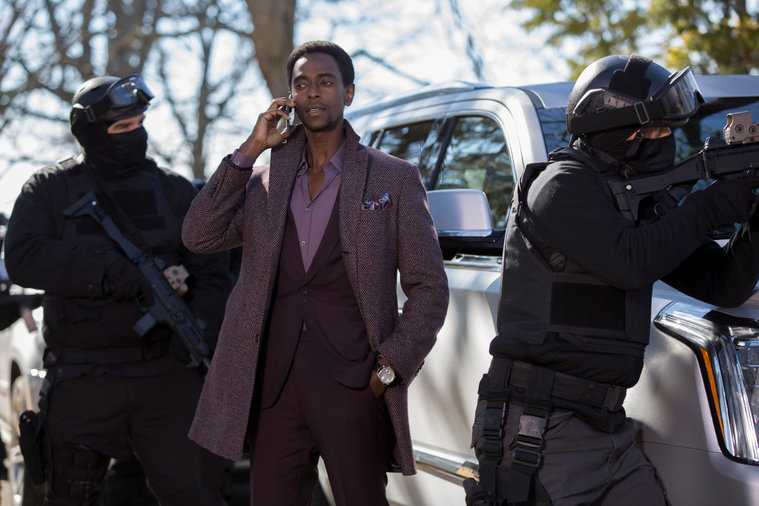 Ci vengono così regalate due vere e proprie apparizioni: la prima è quella di un’umile crapina pelata, riflessa in uno specchio, che va a fare un ultimo, disperato tentativo di convincere Lizzie a non sposarsi, l’altra è quella di Ressler in versione Generale Custer. Purtroppo le sagge parole di Mr. Reddington non hanno effetto e il matrimonio inizia. La sposa vi partecipa ostentando semplicità, con caschetto e cerchietto di fiori che fanno tanto bimba. Sul vestitino corto sorvoliamo: vestirsi da sposa in avanzato stato di gravidanza è sempre difficile, tanto più se si organizza in fretta e furia e non c’è il grande stilista a progettare soluzioni creative su misura. Mr. Solomon, invece, arriva sfoggiando un look a metà tra l’indimenticato Tony Manero della Febbre del Sabato Sera e il Joker di Heath Ledger. Menzione speciale per il cappottino. Lo rivediamo dopo averlo lasciato, qualche mese fa, a marinare nelle segrete del Bureau e a lui si lega la terza apparizione, o quasi, della puntata: la persona, per ora misteriosa, da cui è stato assunto dopo esser stato scaricato pure dal gruppo Cabala.