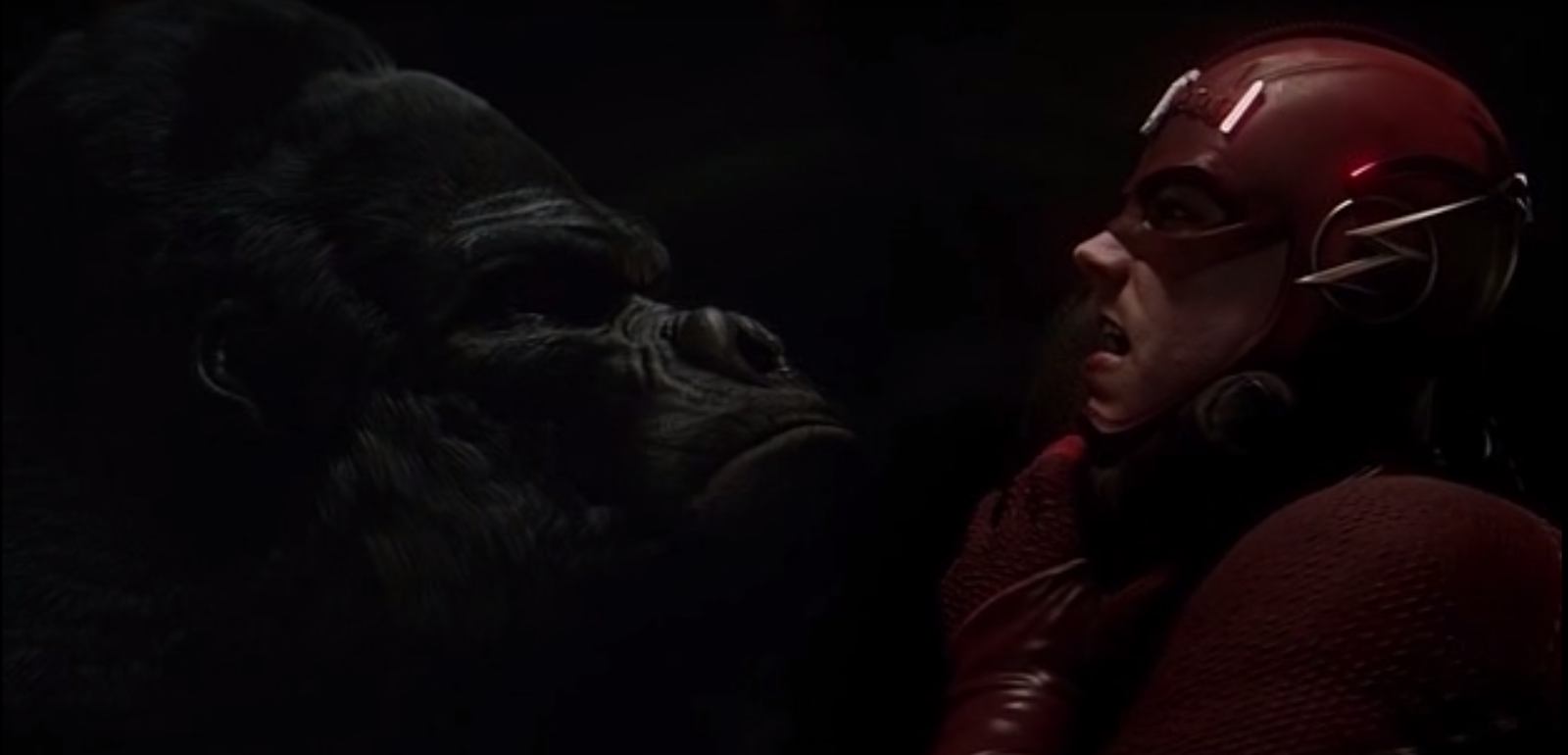 4. Debutta finalmente il personaggio di Gorilla Grodd, anticipato sin dal “Pilot” della serie. Comparso per la prima volta su The Flash #106 del 1959, Grodd acquisì dei poteri quando una navicella spaziale approdò sulla Terra e, il pilota di tale nave aliena, diede dei superpoteri a Grodd e ad altri semplici gorilla come lui; oltre ad avere un intelletto di gran lunga superiore a quello degli esseri umani, è anche un telepate. Lui e i suoi compagni potenziati, poi, decisero di seguire l’alieno e costruirono una città interamente formata da gente come loro e la chiamarono “Gorilla City”, ma Grodd divenne presto assetato di potere e progettò di conquistare il mondo, portandolo spesso e volentieri sulla strada di Flash.