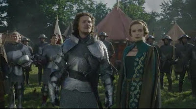 Se Margaret riesce a ritagliarsi ancora un ruolo all’interno di una narrazione sempre più Henry-e-Lizzie-centrica, altrettanto non riesce a fare Elizabeth, personaggio che non ha ormai più nulla da dire e che giustamente viene tolto di mezzo, definitivamente (ancora una volta l’opera di finzione piega alle proprie esigenze la storia vera, perché Elizabeth sarebbe dovuta già morire ben tre anni prima di Jasper), riuscendo a riconciliarsi con la figlia Lizzie prima di lasciare questo mondo. L’ex-regina è così ostinatamente aggrappata ai propositi di vendetta e di distruzione della casa Tudor che persino in punto di morte non trova di meglio da fare che esortare la primogenita ad appoggiare Richard, incapace di comprendere che la ragazza, ormai, è innamorata dell’uomo che è stata costretta a sposare e non gli andrà mai contro. Anzi, quando alla vigilia della battaglia decisiva Lizzie scopre che i soldati stanno disertando, non esita a prendere in mano la situazione, spronandoli con un discorso in cui paradossalmente la figura della neo-defunta è sfruttata per convincerli definitivamente a combattere per re Henry (Elizabeth avrebbe voluto sicuramente tutt’altro).