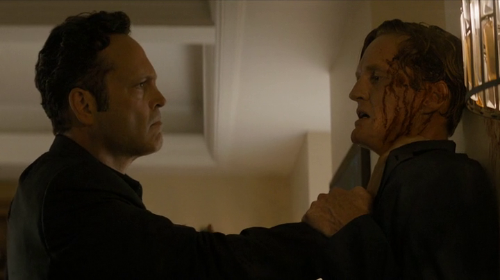 Infine non possiamo che spendere qualche parola per il vero protagonista della puntata: Frank Semyon. Sul web la performance di Vince Vaughn è stata praticamente criticata all’unanimità, sollevando diversi dubbi sull’inadaguatezza dell’attore in merito al suo ruolo. Sebbene in parte queste critiche fossero meritate, complici i dialoghi inconsistenti e falsamente allegorici assegnati al personaggio nel corso della stagione, con l’interpretazione messa in scena in “Black Maps And Motel Rooms” ci si lascia alle spalle quell’architettura frettolosa e talvolta superficiale operata per la sua costruzione, mostrandoci finalmente un Frank meno statico, più coerente per quanto concerne le reali potenzialità del suo personaggio e soprattutto meno impantanato in quella staticità evolutiva che ha segnato drasticamente il suo processo di caratterizzazione per più di metà stagione. La sequenza dell’uccisione di Blake diventa la molla che porterà Frank a prendere in mano la situazione, resosi ormai conto di essere rimasto da solo, proseguendo nel percorso di consapevolezza iniziato nella puntata precedente durante il dialogo con il figlio di Stan, un momento che potremmo definire vero e proprio spartiacque nel processo di trasformazione del personaggio.