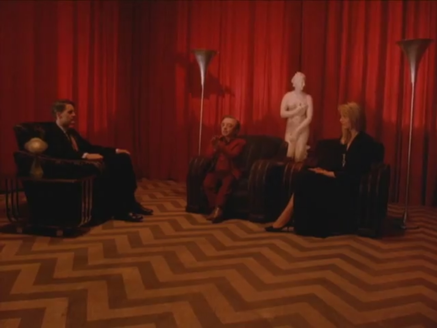 Con la onnipresente musica jazz sullo sfondo (Audrey che aziona il juke-box, Leland che prova a ballare, Cooper che alla fine schiocca le dita), prende forma una sequenza destinata a fare la storia. Entriamo direttamente nei sogni di Dale e allo stesso tempo entriamo in un ambiente circondato da ermetismo e inquietudine. Chiunque avrà fatto un incubo in cui la figura più spaventosa dello scenario si trovava di spalle. In questo caso vediamo un nano ballare (toh, come Leland e Audrey), delle tende rosse (introdotte nel locale dove vanno i fratelli Horne?), un pavimento a scacchi, un Dale Cooper invecchiato e… Laura Palmer. L’uomo con un braccio solo pronuncia il monologo sopra riportato. Qualcosa di molto strano sta accadendo, soprattutto perché a fine episodio sembra che il caso sia già risolto.